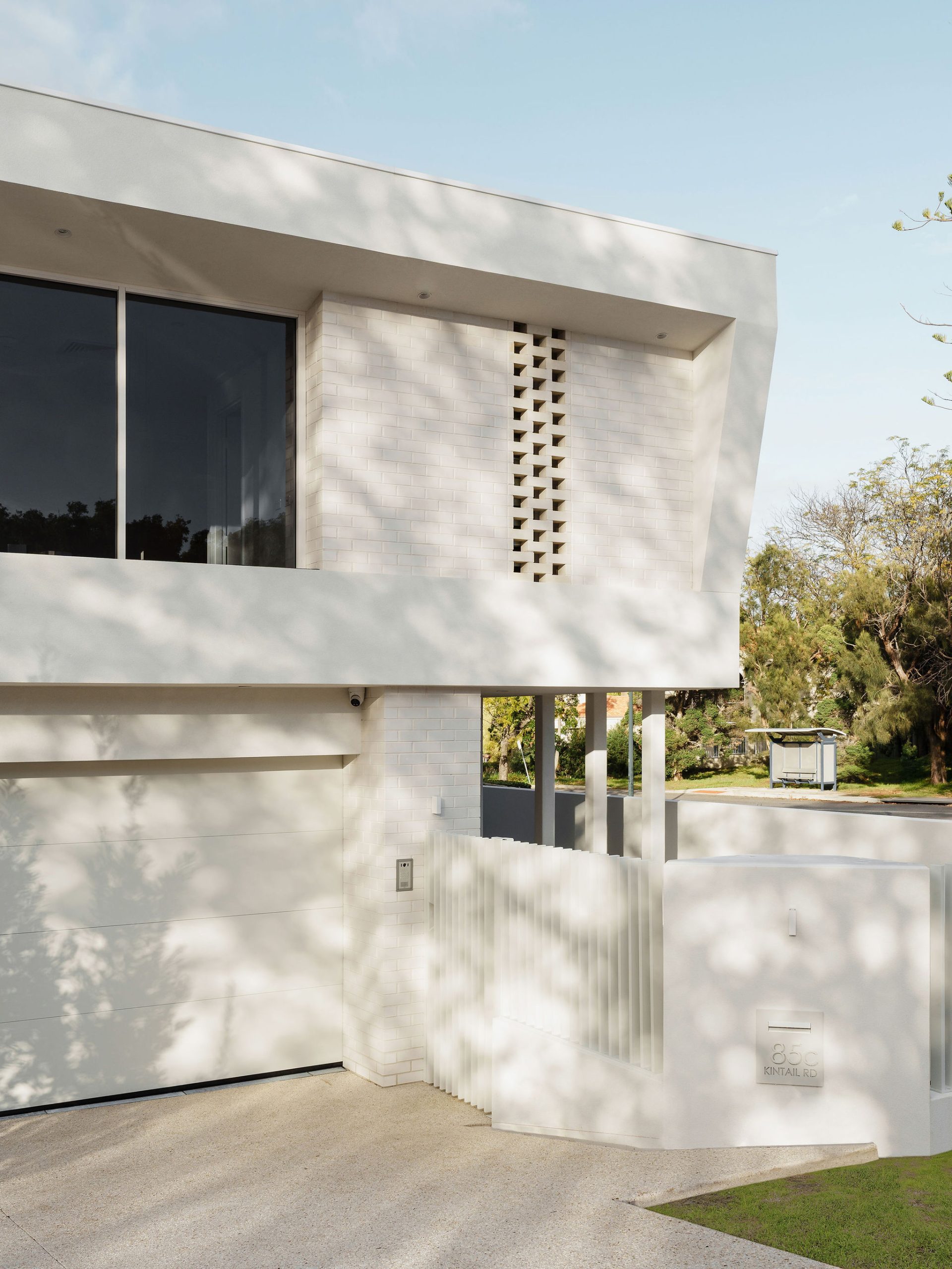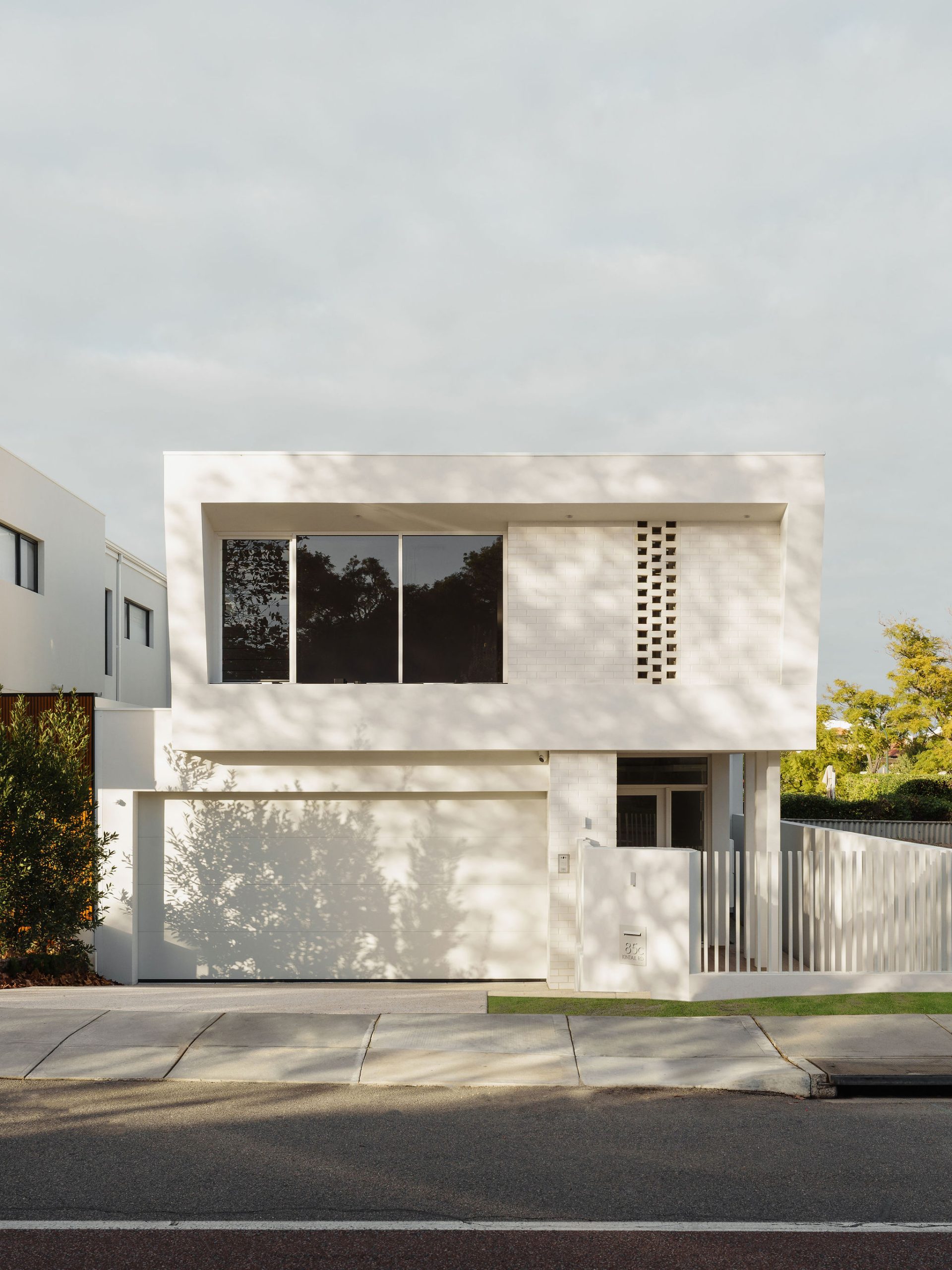 in a quiet applecross street, project 085c is a bold, sculpted, eye-catching white home texturally layered in deliberate and effortful ways, all on a tight 10m frontage. framed by clean-lined brickwork and crisp vertical battening, texture, tone and careful detail aren’t simply a choice of palette — they’re discipline. every surface, line, and finish belong in a home that prioritises clarity, but not at the cost of comfort.